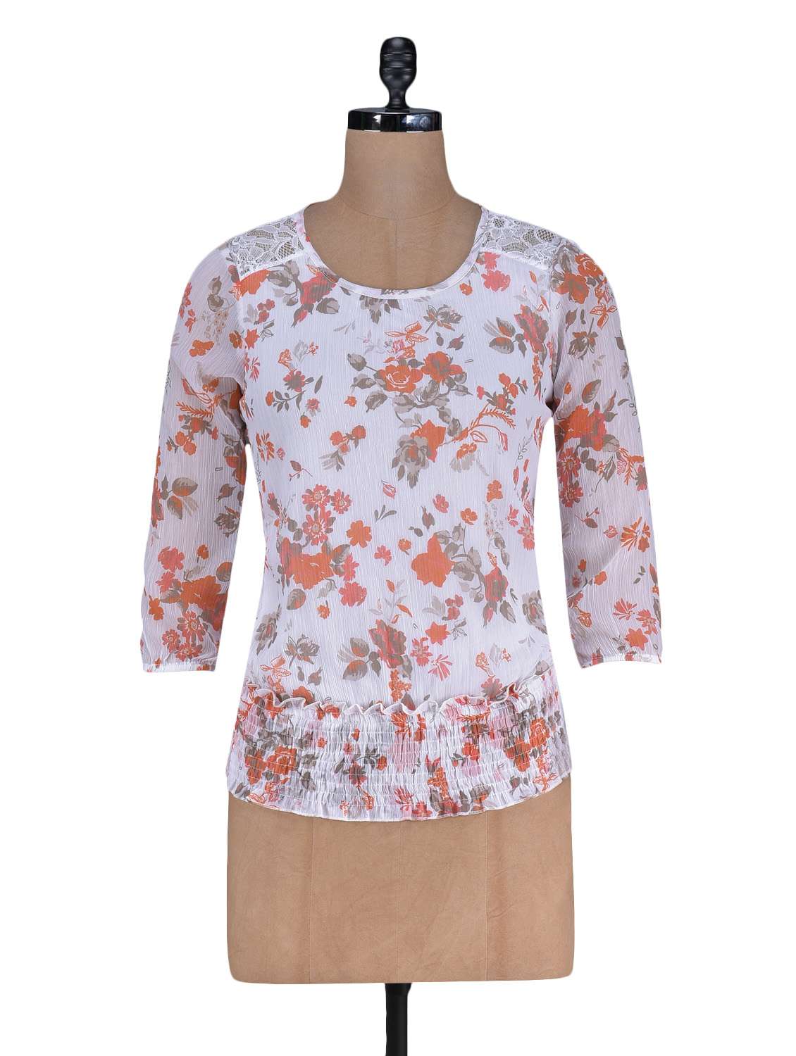 floral printed round neck polygeorgette top