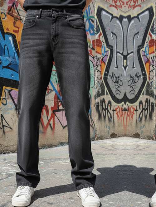 men plain mid rise baggy jeans