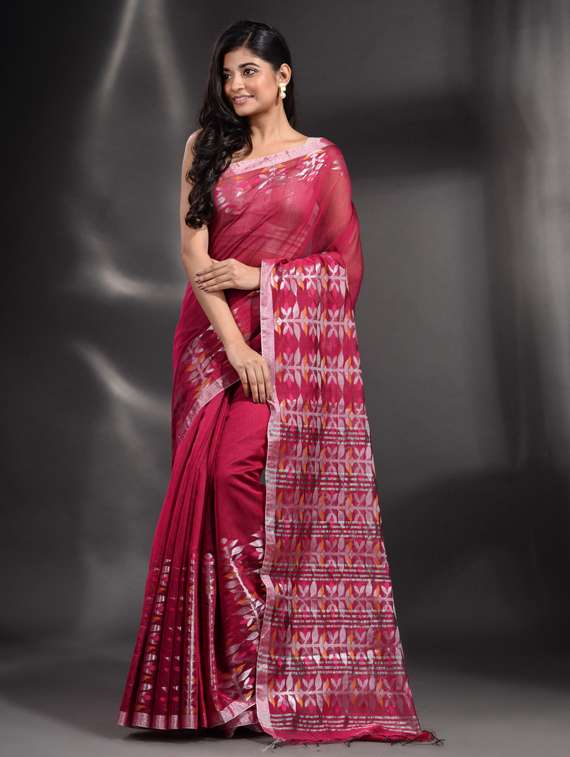 women's stripes fuchsia colored saree with blouse