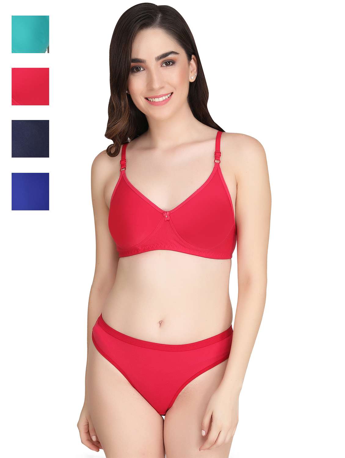 Liigne Women Everyday Non Padded Bra Panty Set (Pack Of 4) - This Lingerie Set Made of Pure Cotton