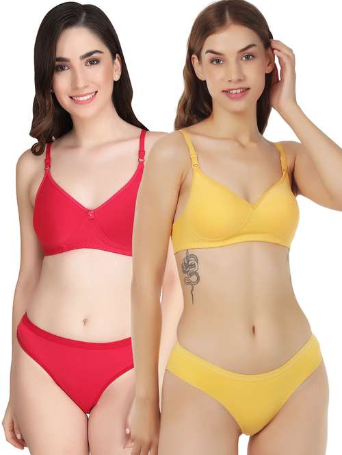 women pack of 2 solid bra and panty set