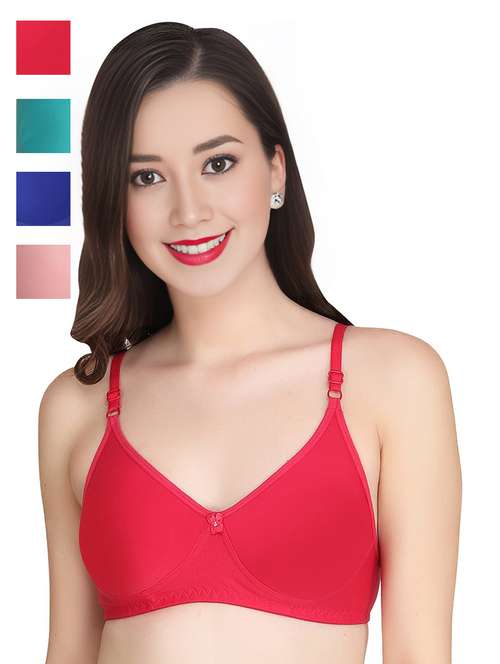 Liigne Women Everyday Padded Bra (Pack Of 4) - Made of Pure Cotton Full Coverage Non Wired Pushup Soft Cup for T-Shirt Saree Dress Sports Garment for Daily Use Everyday