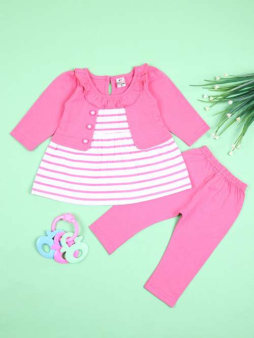 - Browse through the huge collection of casual wear twin sets and jump suits for girls in pink colors and designs to make your young lady look the fashionista that she is.