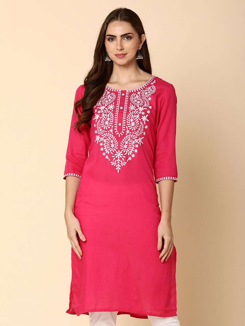 - » women pink round neck straight kurta