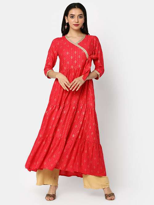 - » women red printed knot detailed ethnic dress