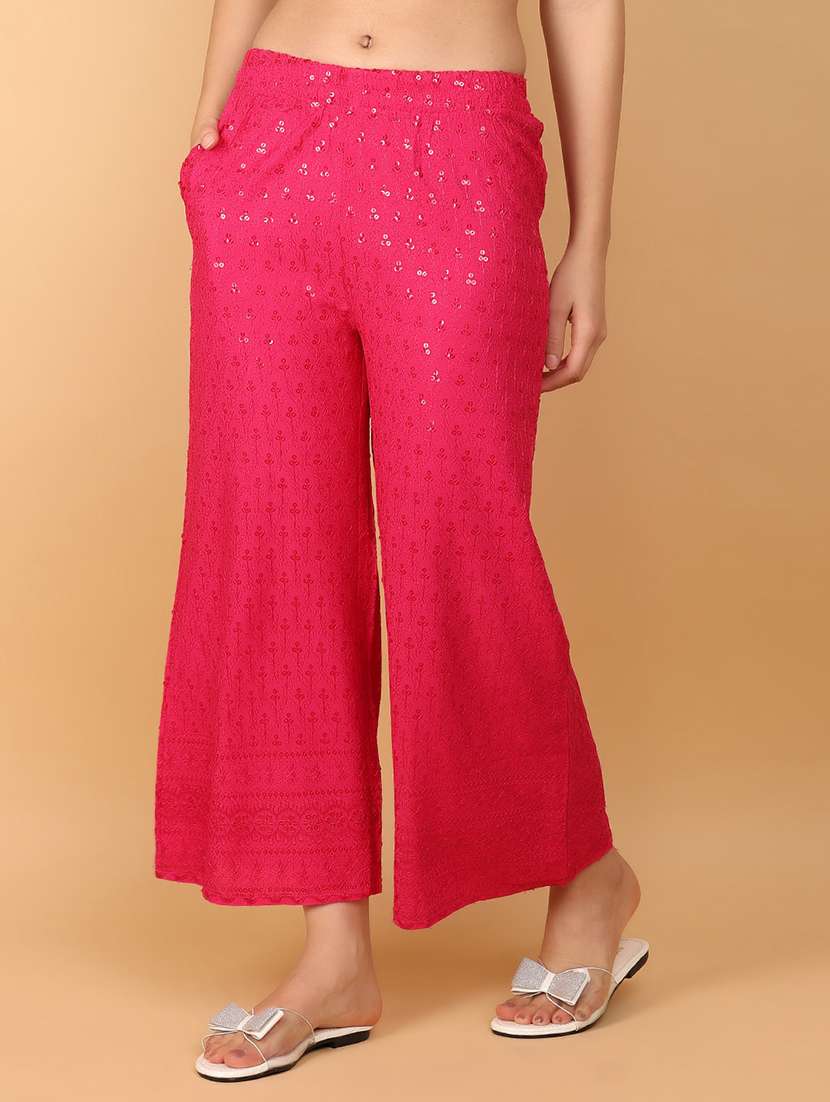 women pink solid with work ankle length palazzo