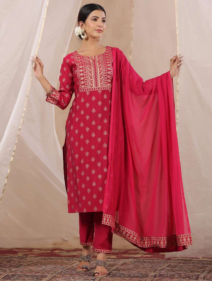 - » women pink notch neck kurta pant set with dupatta