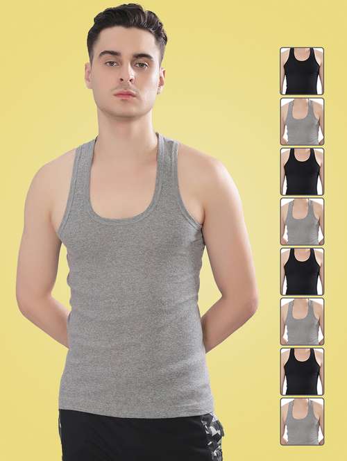 men pack of 8 solid sleeveless vest