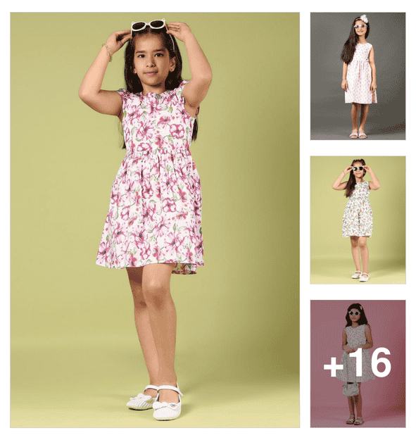 girls floral printed round neck frock