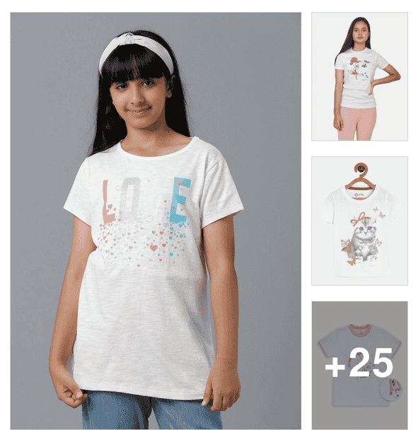 girls front print round neck t-shirt