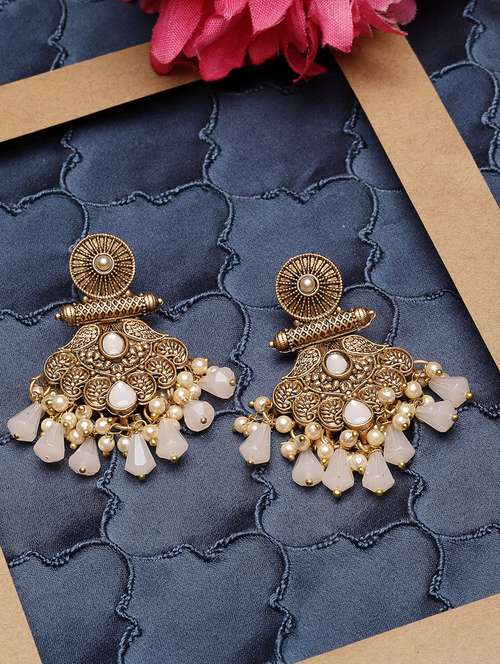 - » adiva antique gold-plated pink pearl & stone contemporary shaped drop earrings