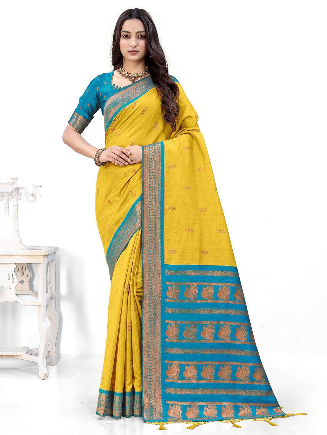 gold art silk banarasi saree with blouse