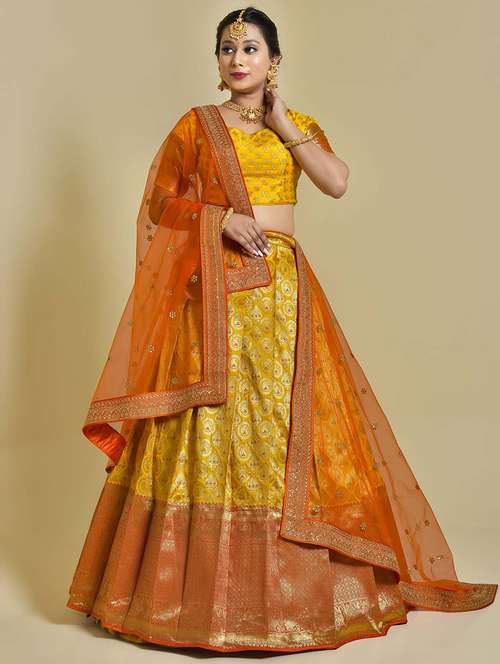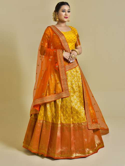 - Are you ready to adorn some alluring lehengas this season? Well, gear up to look gracious as LimeRoad brings to you the most magnificent collection of lehengas from HalfSareeStudio and in gold colours.