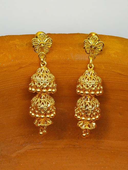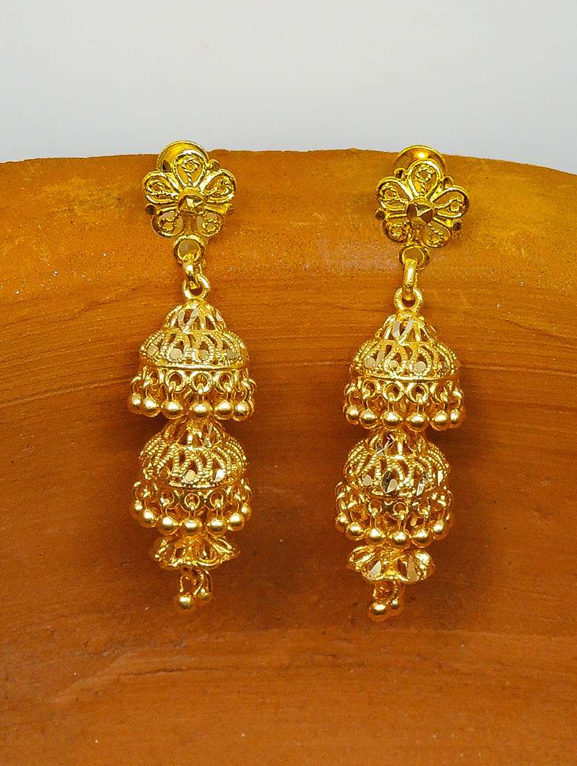 gold brass jhumka earring - 17860315 - Very Small Image - 1