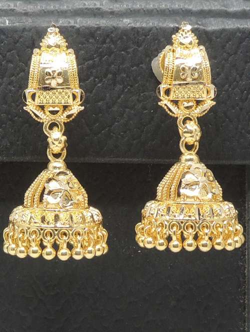 gold brass jhumka earring - 19666895 - Very Small Image - 1