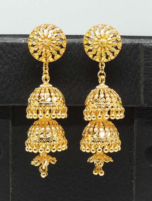 gold brass jhumka earring - 19666909 - Very Small Image - 1