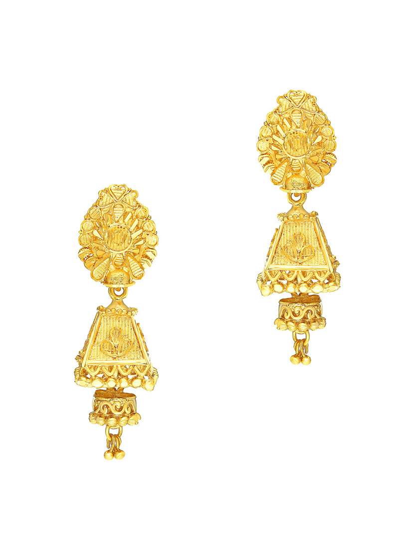 gold brass jhumka earring - 19666948 - Very Small Image - 1