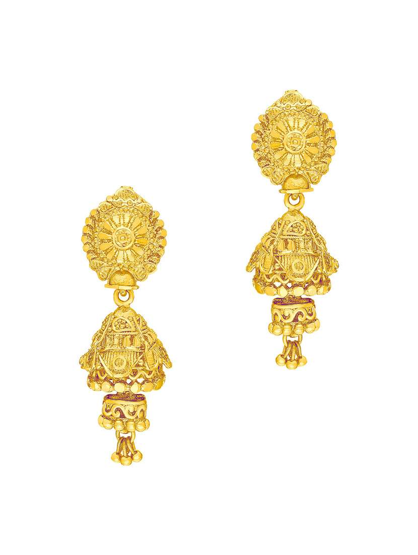 gold brass jhumka earring - 19666958 - Very Small Image - 1