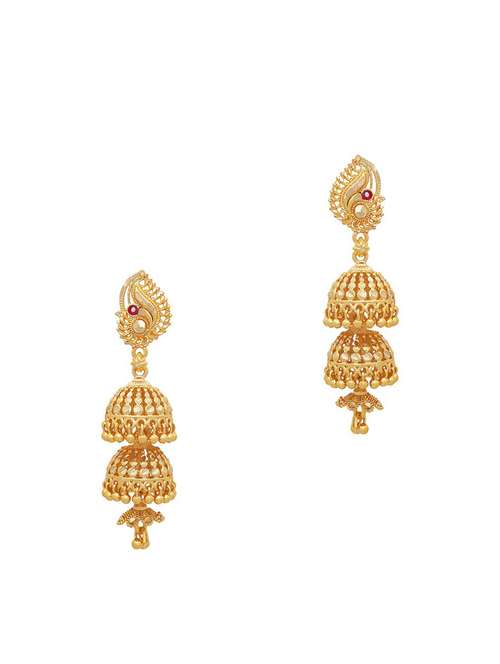 gold brass jhumka earring - 19667113 - Very Small Image - 1