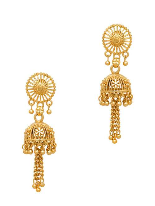 gold brass jhumka earring - 19667178 - Very Small Image - 1