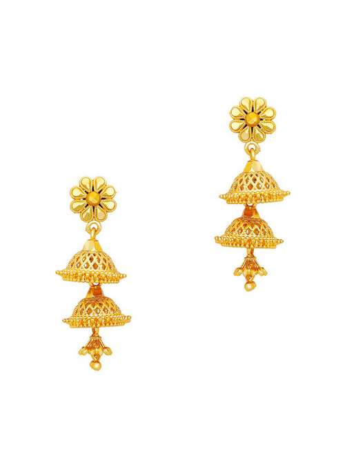 gold brass jhumka earring - 19667325 - Very Small Image - 1