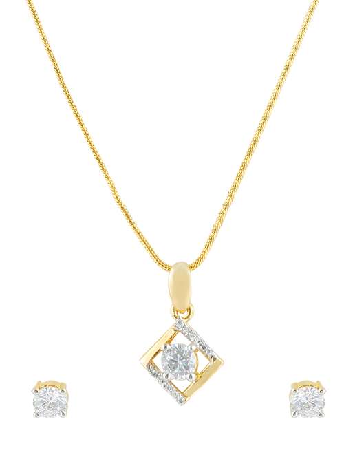 Igniva Women's Studed Gold Pleated Pendant & Earing Set