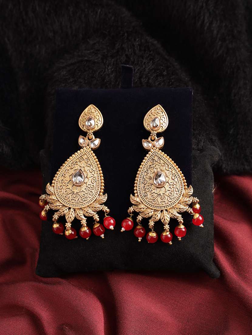 - » antique gold-toned color kundan-studded & beaded handcrafted dome shaped oval drop earrings