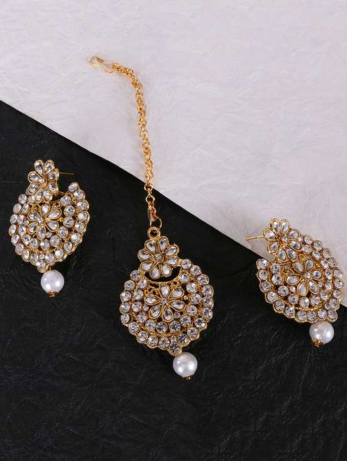 gold brass maang teeka - 16253450 - Very Small Image - 1