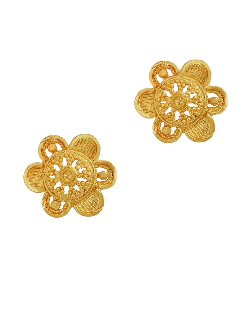 Women's and Girl's Gold Plated Handmade Sunflower Design Ethnic Stud Earring