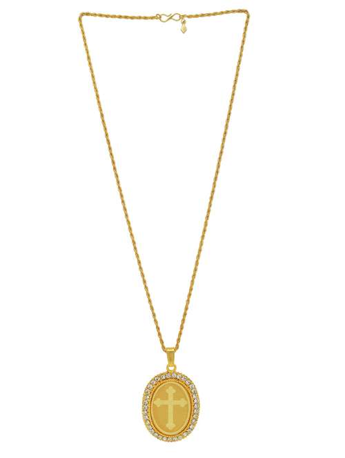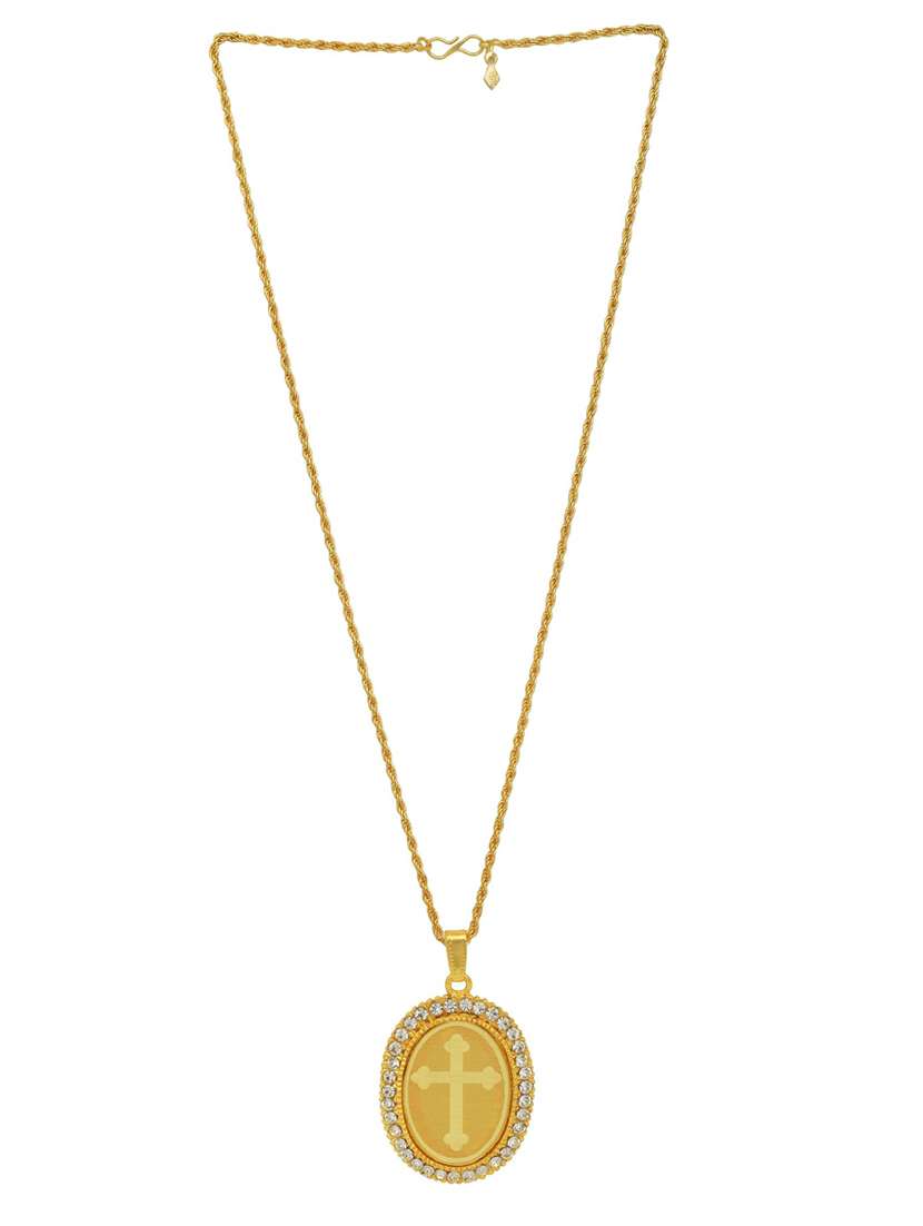 Gold plated Brass CZ American Diamond Christian Cross embossed chain pendant temple jewellery Men women boys girls
