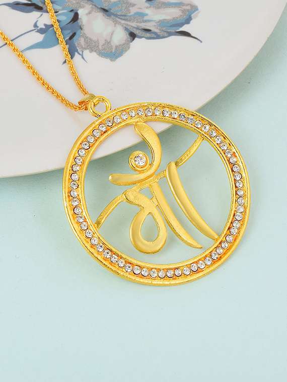 Brass Goldplated Imitation Diamond Big and Bold MAA word Spiritual Chain pendant