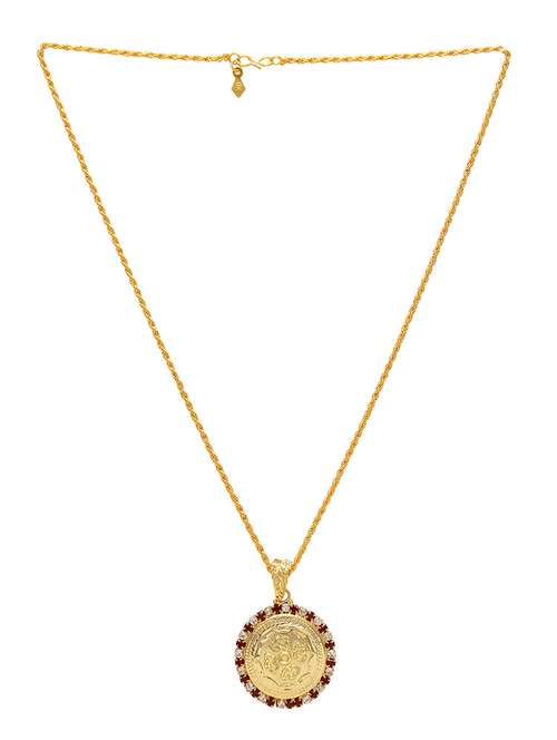 Brass CZ carved Roundshape Ethnic chain pendant