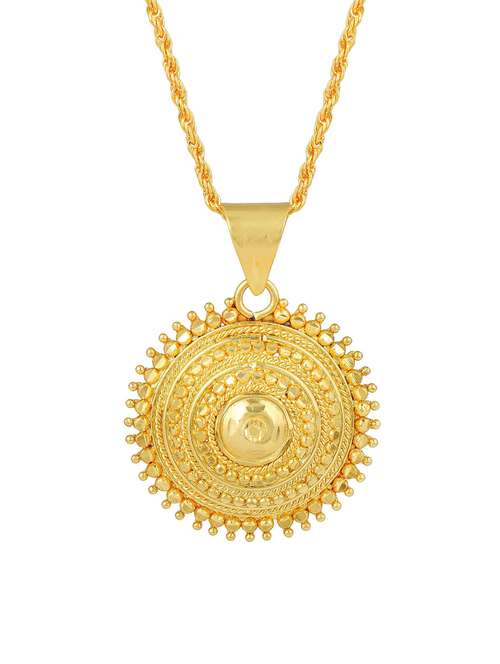 An ornament crafted to perfection to mark a scintillating appeal in your look. A beautiful, designer created, limited pieces, gold plated pendant handmade with Flower theme, designed specially for a ethnic look. Handcrafted pendant with a 24 inch rope chain wear it Designed by award winning designers, and made by expereinced and skilled artisans.