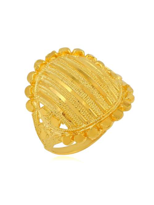 A super finish, exquisite Striped Design filigree work, Long Oval shape finger ring for Women. Elegant and exclusive statement jewellery design, which covers the major part of length of finger. Handmade by Craftsmen from Rajasthan (Bikaner), the fingerring is a joy to wear and behold!! Using ancient handtools, the fine filigree work comes out with exquisite perfection. Made in Brass, the ring is further given a genuine 1 Micron Goldplating, which makes this ring to look exactly like real Gold finger ring, It matches well with all your other jewellery. Combines fashion with Tradition, this can be worn at all occasions. A good partywear, marriage, college, travel wear, and makes a good gifting option as well to Women