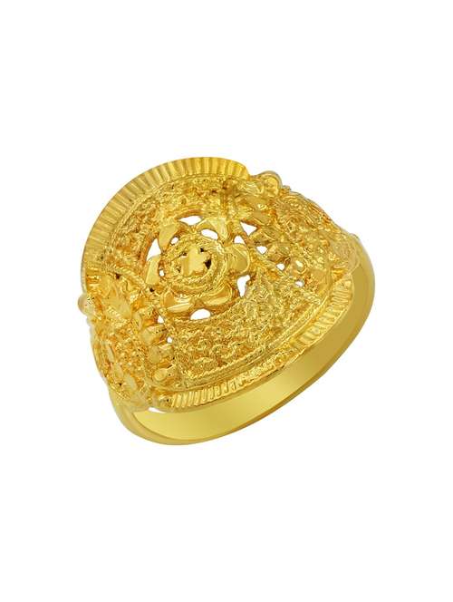 A super finish, hand crafted, exquisite filigree work, finger ring for Women. Elegant long design, which covers the major part of length of finger. Made, finished and polished by Bengali craftsmen, this looks exactly like real Gold finger ring, and match well with all your other jewellery. Combines fashion with Tradition, this can be worn at all occasions. A good partywear, marriage, college, travel wear, and makes a good gifting option as well to Women