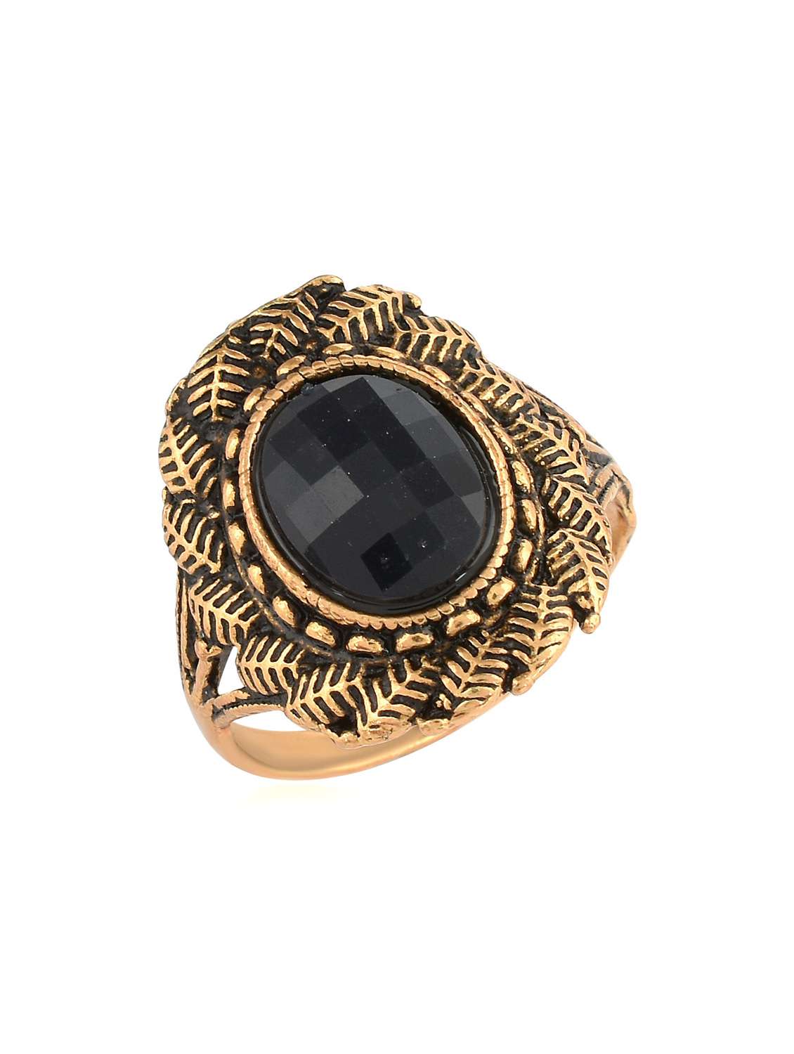 A Antique look Traditional Fingerring. The look of the ring takes back into history where rings were not treated with todays alloys and technology for polish. Exquisite rasrawa work on face, s so charming, and adds elegance to the stone. The stone is given Chequerboard-commonly known as Chess cut facetting. Combining this stone and metal filigree, gives you a ring, which makes your look complete, and gives you that added elegance. Made with best of metals and components, the ring is designed to remain and look same, for a long period of time.