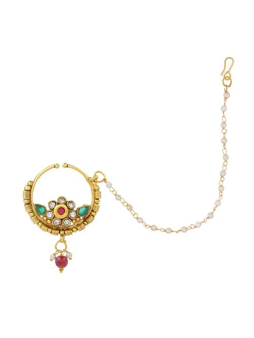 Memoir Gold plated Rasrawa CZ & Pearl Nath Women Traditional Nose ring