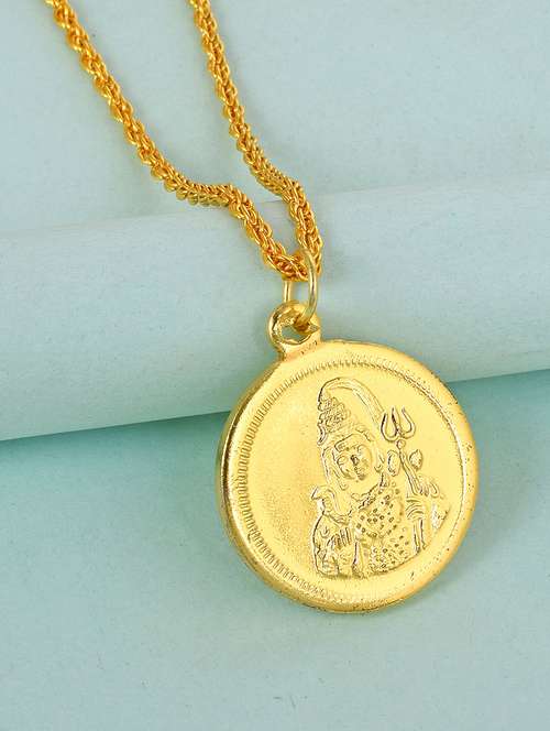 - » memoir gold plated reversible durga & shiva coin chain necklace pendant