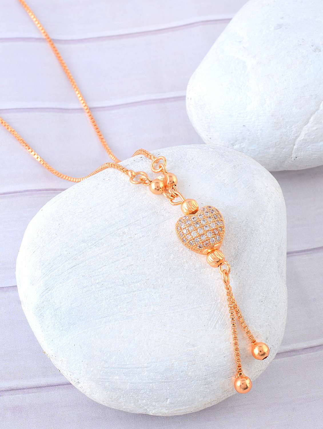 Brass Rose Gold Imiation Diamond Heart shape pendant necklace for Women Girls