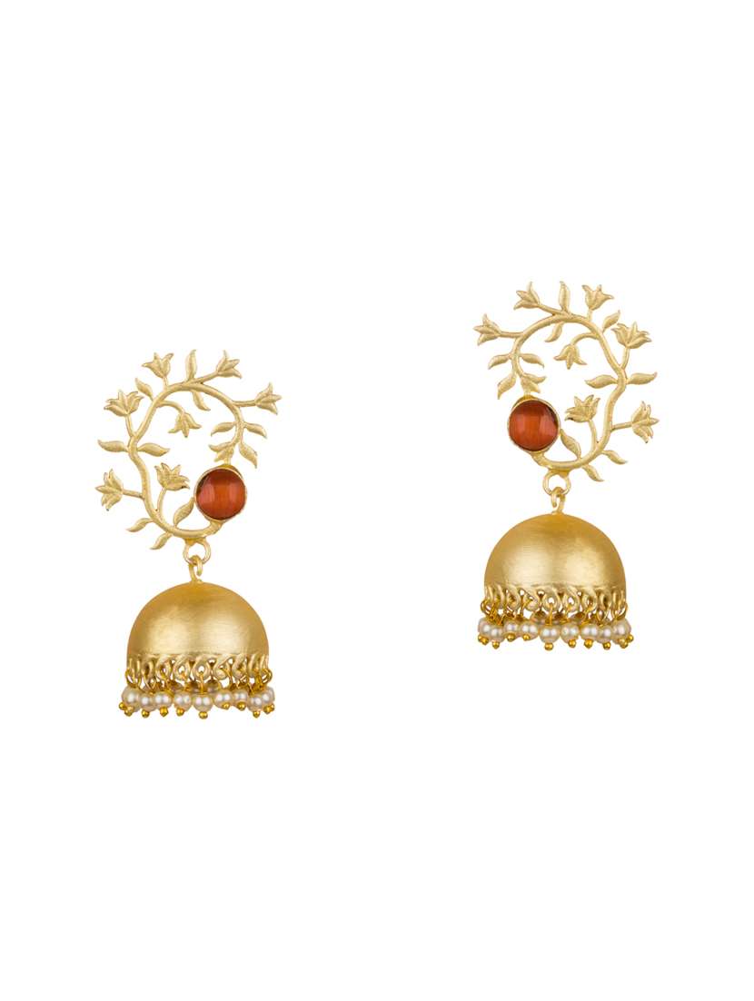 gold brass jhumka earring - 16060026 - Very Small Image - 1