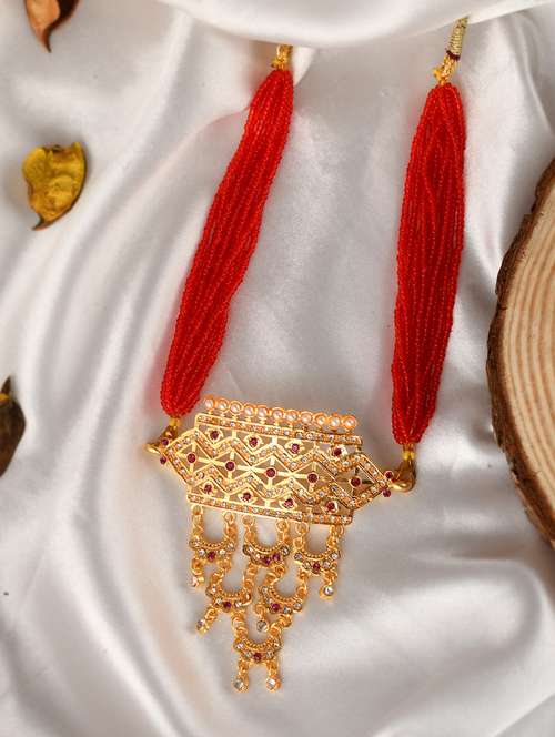 - » women gold toned ethnic necklace