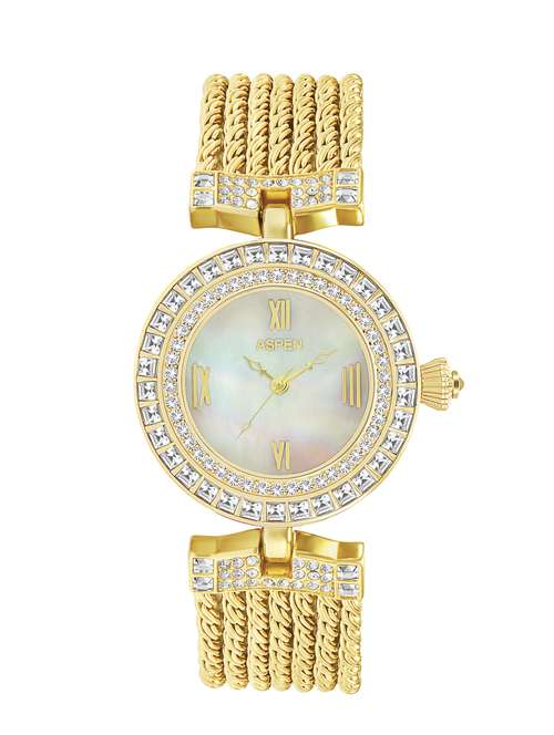 - » aspen ladies white color dial with mother of pearl ionic gold plating watch for party wear