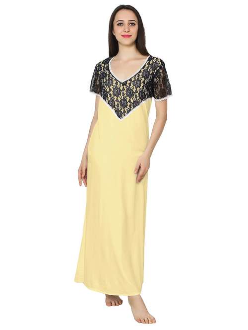 v neck solids nighty - 20033897 - Very Small Image - 1