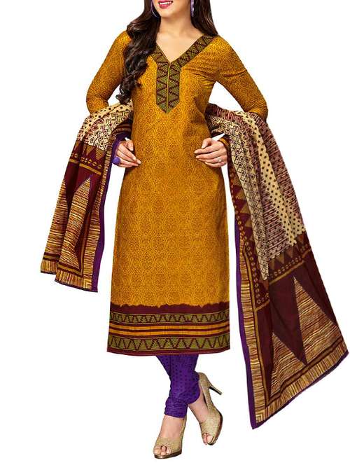 - » mustard cotton printed unstitched suit