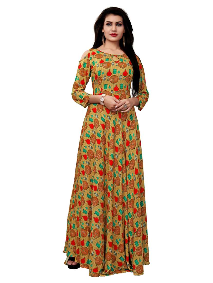 printed semi-stitched flared gown - 19662081 - Very Small Image - 1