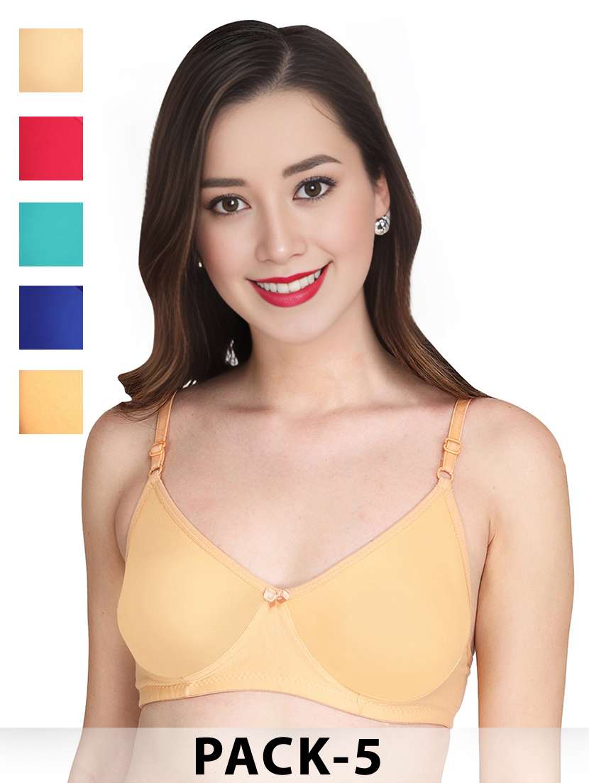 women pack of 5 solid non wired t-shirt bra