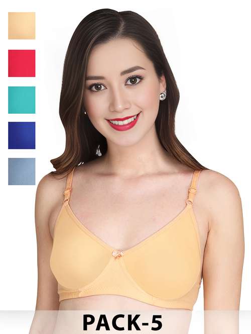 Liigne Women Everyday Non Padded Bra (Pack Of 5) - Made of Pure Cotton Full Coverage Non Wired Pushup Soft Cup for T-Shirt Saree Dress Sports Garment for Daily Use Everyday