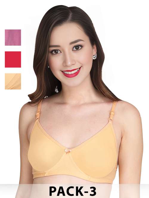 Liigne Women Everyday Non Padded Bra (Pack Of 3) - Made of Pure Cotton Full Coverage Non Wired Pushup Soft Cup for T-Shirt Saree Dress Sports Garment for Daily Use Everyday