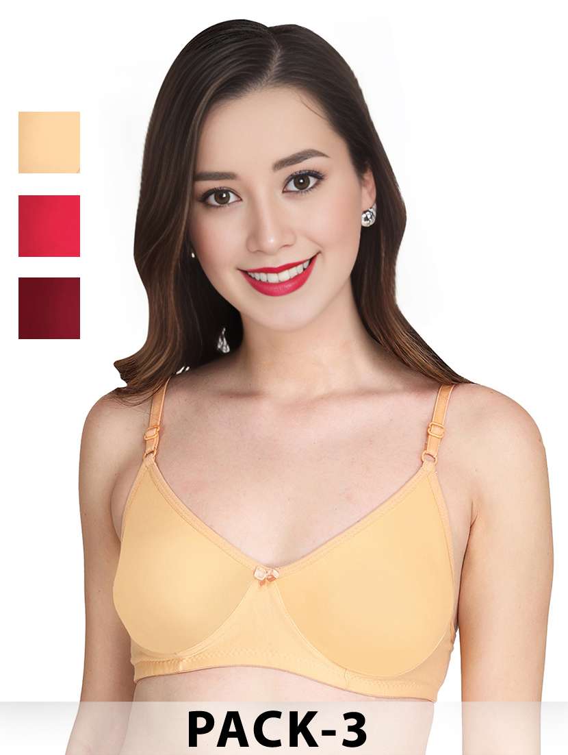 Liigne Women Everyday Non Padded Bra (Pack Of 3) - Made of Pure Cotton Full Coverage Non Wired Pushup Soft Cup for T-Shirt Saree Dress Sports Garment for Daily Use Everyday