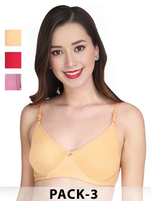 Liigne Women Everyday Padded Bra (Pack Of 3) - Made of Pure Cotton Full Coverage Non Wired Pushup Soft Cup for T-Shirt Saree Dress Sports Garment for Daily Use Everyday